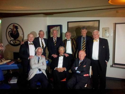 Foto: Ben Trijzelaar (met gele vlinderdas) uiterst rechts op de foto bij de reünie van het winnende 1964-team